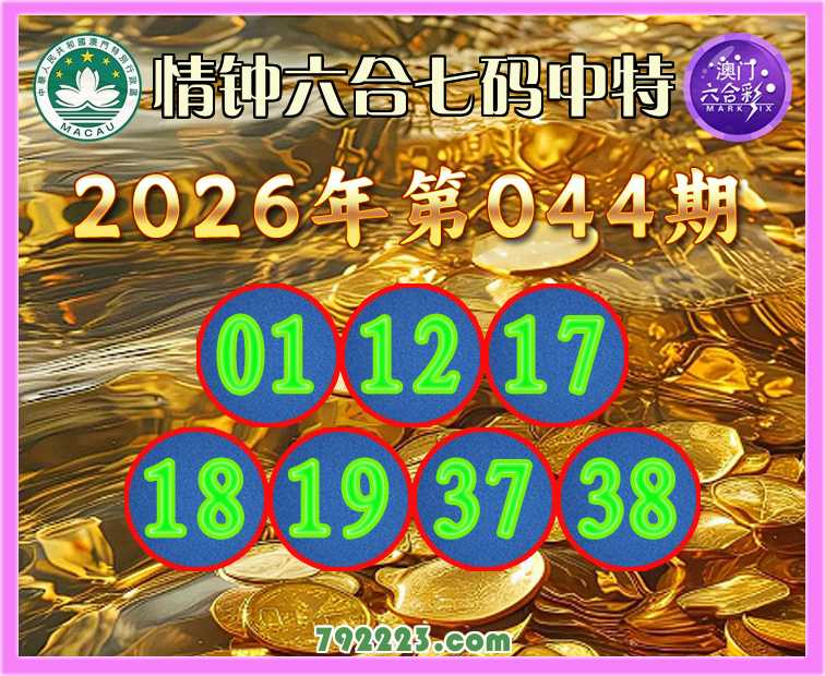 044期:《情钟六合》 🧩七码中特🧩【01.12.17.18.19.37.38】开:19