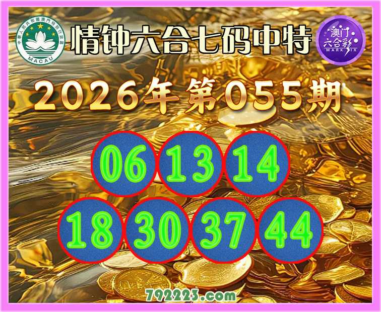 055期:《情钟六合》 🧩七码中特🧩【06.13.14.18.30.37.44】开:14