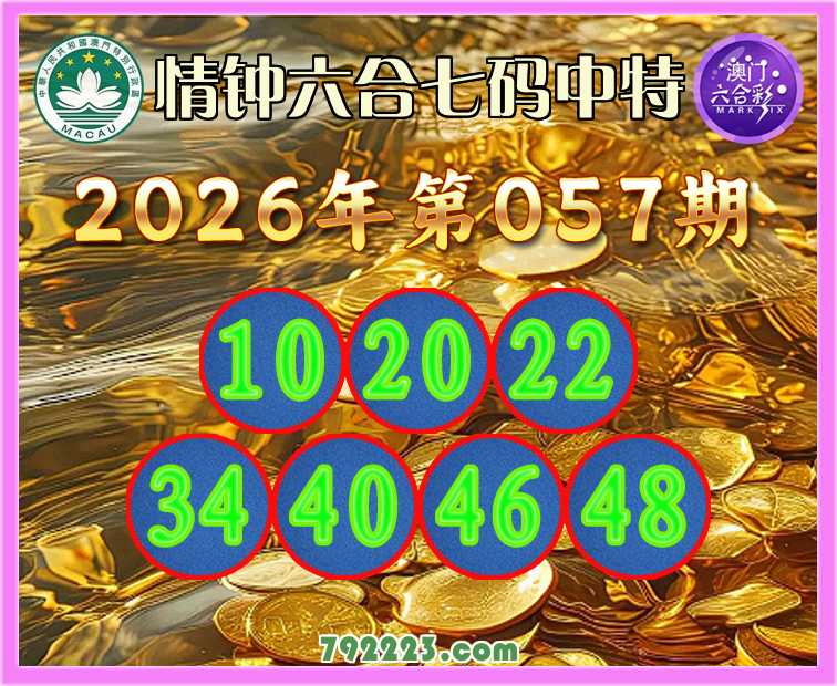 057期:《情钟六合》 🧩七码中特🧩【10.20.22.34.40.46.48】开:23