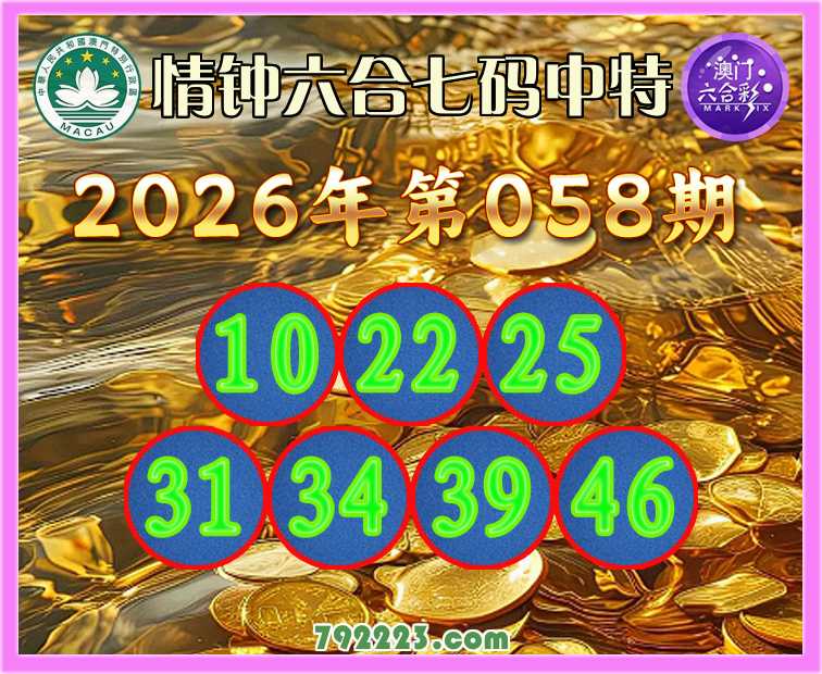 058期:《情钟六合》 🧩七码中特🧩【10.22.25.31.34.39.46】开:31