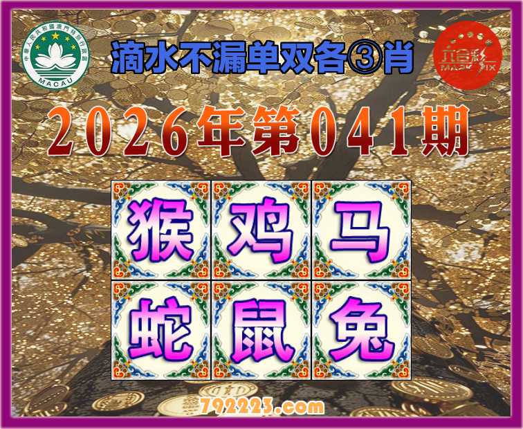 041期: 滴水不漏 🧩单双各③肖🧩【猴.鸡..蛇.鼠.兔】开:马36