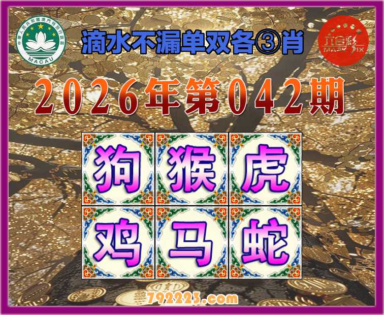 042期: 滴水不漏 🧩单双各③肖🧩【狗.猴..鸡.马.蛇】开:虎16