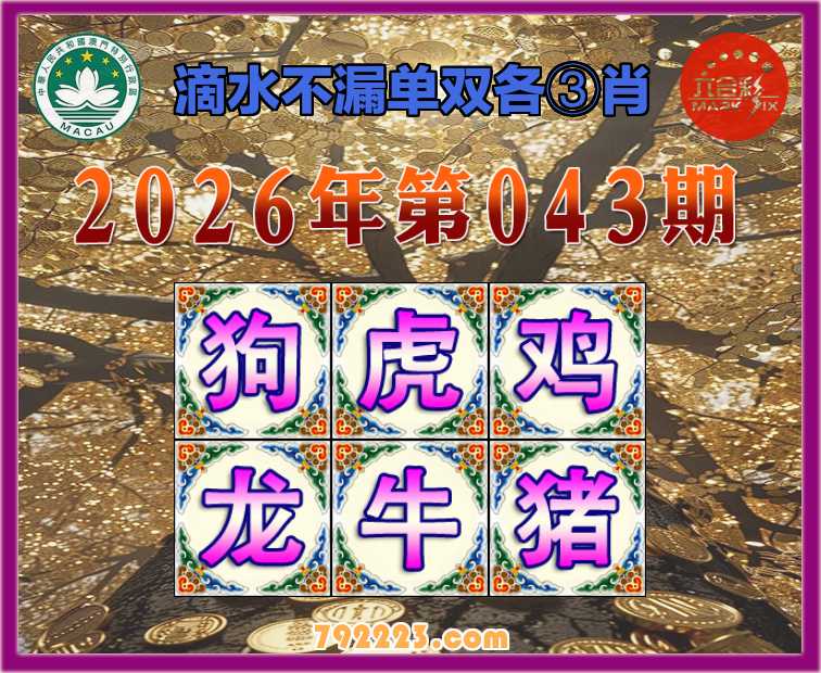 043期: 滴水不漏 🧩单双各③肖🧩【狗.虎.鸡.龙.牛.猪】开:蛇13