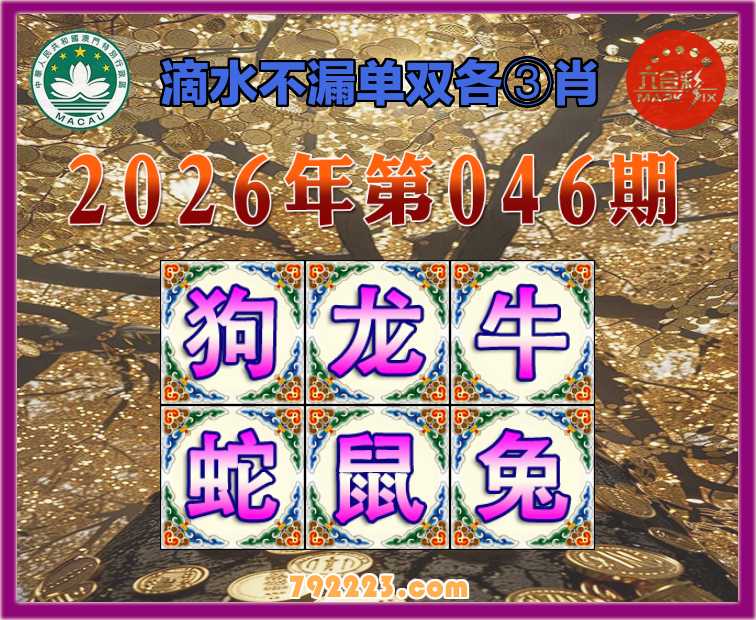 046期: 滴水不漏 🧩单双各③肖🧩【狗.龙.牛.蛇.鼠.】开:兔03