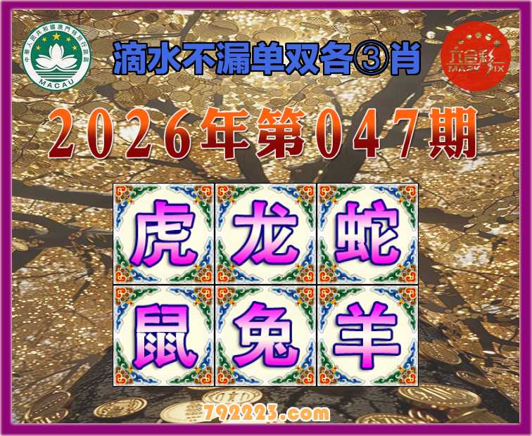 047期: 滴水不漏 🧩单双各③肖🧩【虎.龙.蛇.鼠..羊】开:兔39