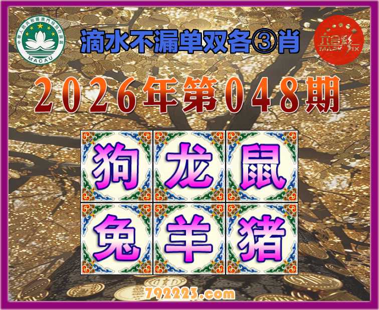 048期: 滴水不漏 🧩单双各③肖🧩【狗.龙.鼠.兔..猪】开:羊24