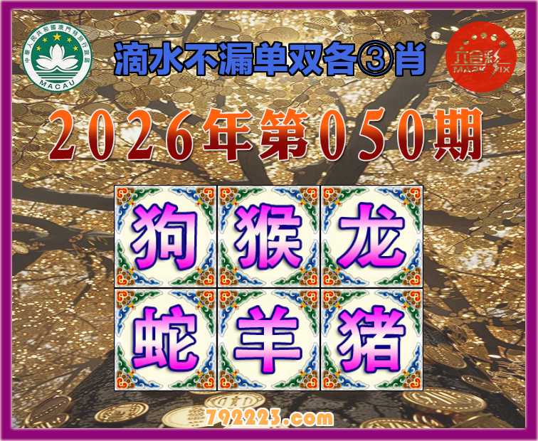 050期: 滴水不漏 🧩单双各③肖🧩【狗..龙.蛇.羊.猪】开:猴23