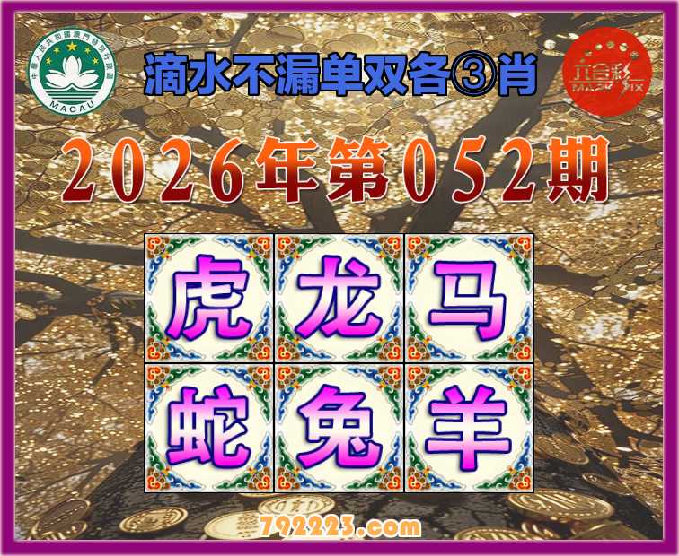 052期: 滴水不漏 🧩单双各③肖🧩【虎.龙.马..兔.羊】开:蛇38
