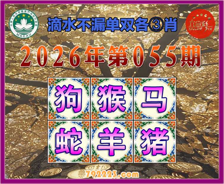 055期: 滴水不漏 🧩单双各③肖🧩【狗.猴.马..羊.猪】开:蛇14