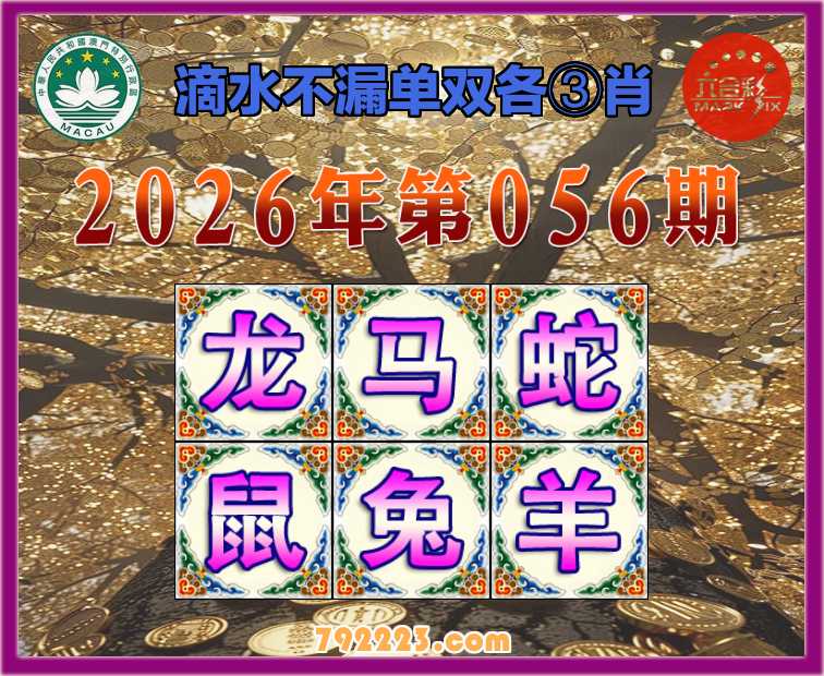 056期: 滴水不漏 🧩单双各③肖🧩【龙.马.蛇.鼠.兔.】开:羊48