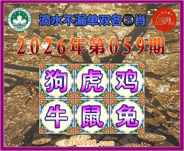 059期: 滴水不漏 🧩单双各③肖🧩【狗.虎..牛.鼠.兔】开:鸡10