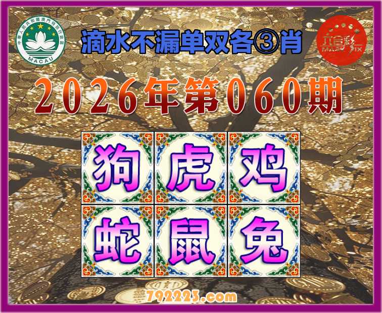 060期: 滴水不漏 🧩单双各③肖🧩【.虎.鸡.蛇.鼠.兔】开:狗09