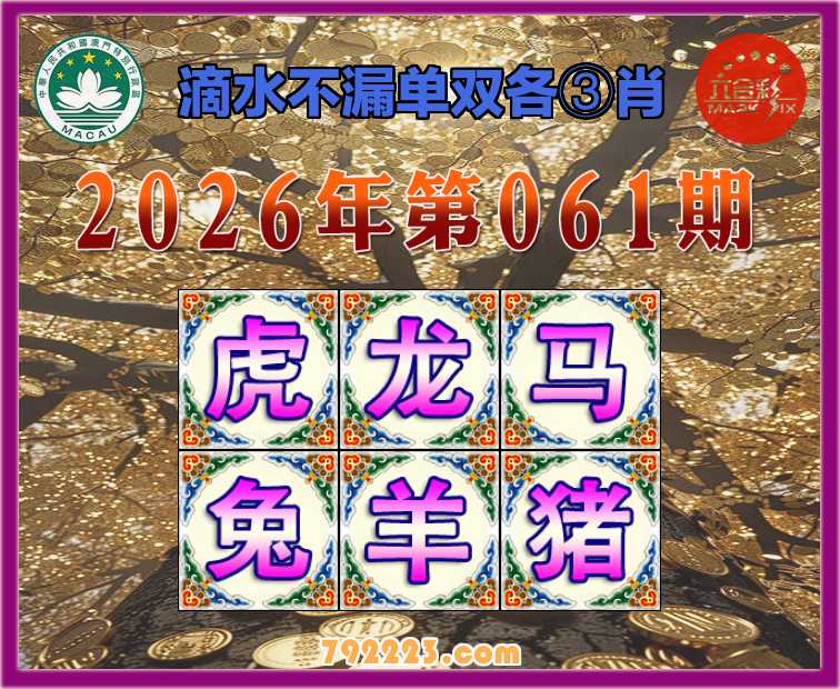 061期: 滴水不漏 🧩单双各③肖🧩【.龙.马.兔.羊.猪】开:虎29